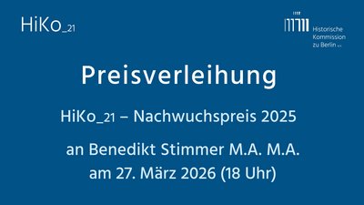 27. März 2026 | 18 Uhr – Verleihung des HiKo_21 – Nachwuchspreises 2025
