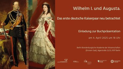 | HiKo21Im Anschluss an unsere Jahresmitgliederversammlung findet eine öffentliche Buchpräsentation statt. Drei Mitglieder des Netzwerks HiKo_21 stellen ihre jüngst erschienenen Dissertationen vor. Die Werke behandeln das Leben sowie das politische Wirken des ersten deutschen Kaiserpaares Wilhelm I. und Augusta.